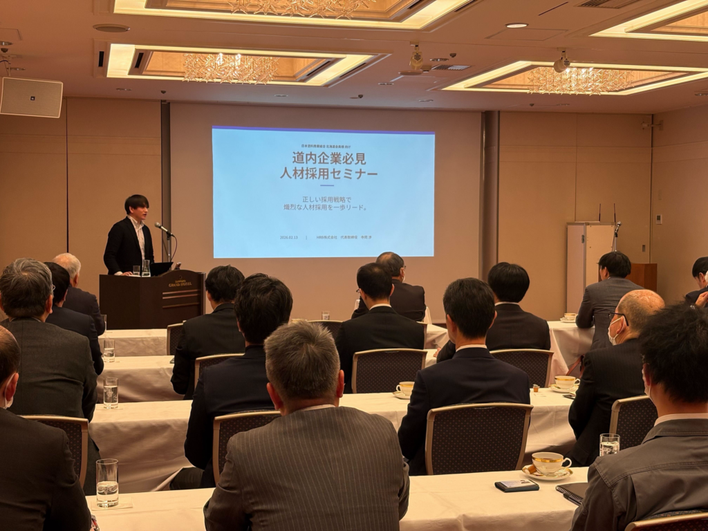 2026年2月13日、日本塗料商業組合 北海道会員様を対象とした採用セミナーが開催され、講師として弊社代表の寺岡が登壇いたしました。